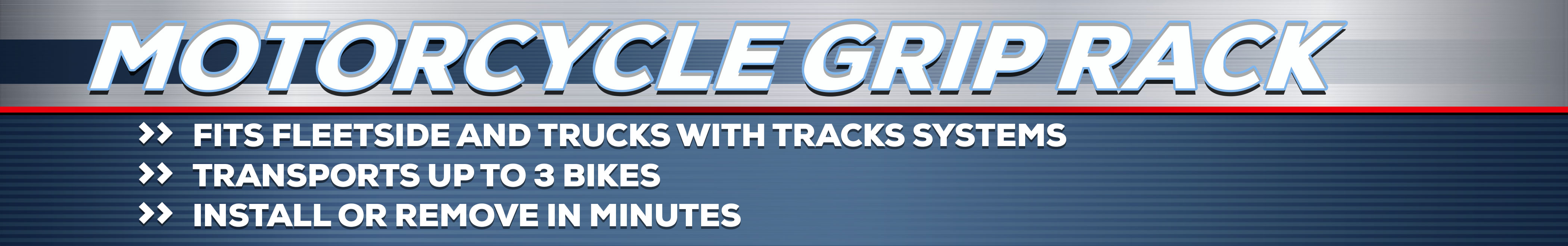 - Our Motorcycle Rack carries one to three dirt or street bikes. Add or remove up to three wheel chocks as needed. The Motorcycle Rack may use one or more Grip chocks. The chocks secure the front wheel, but tie-down straps are required to hold the bikes in place.